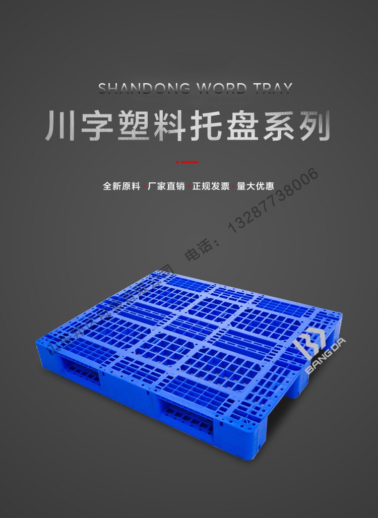 川字托盤:依據國家GB/T標準,川字托盤的底端為三道承重梁,樣子與我們中國漢字中的川 功底一起,為方便我們在選看塑料托盤時方便,也為能夠一同申請辦理,因而,在國際性的一同稱呼里將其取名為‘川字托盤’,并且為了更好地到達塑料托盤的安裝,在托盤的內部又可以內嵌不同樣總數的無縫鋼管。川字托盤原料主要分成二種:HDPE(血壓低壓高相對密度高壓聚乙烯)和PP(聚丙稀):無毒性、無氣味、具備優異的耐溫性和抗寒性,有機化學可靠性好。